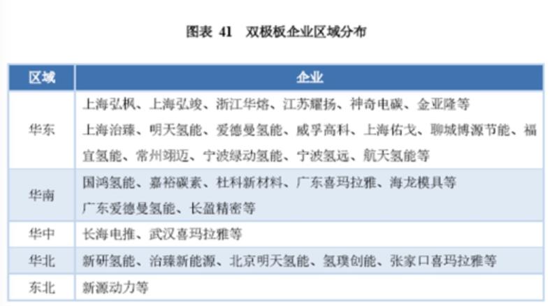 除了主營業(yè)務(wù)是雙極板的企業(yè)以外,國內(nèi)有不少電堆企業(yè)涉足雙極板領(lǐng)域,這些企業(yè)通過整合雙極板、膜電極、電堆等核心部件,打造燃料電池產(chǎn)業(yè)鏈閉環(huán)。目前國內(nèi)涉足雙極板業(yè)務(wù)的電堆企業(yè)主要有明天氫能、愛德曼、國鴻氫能、新研氫能、氫璞創(chuàng)能、新源動力等。