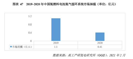 從市場規(guī)模來看,2020年國內(nèi)氫循環(huán)系統(tǒng)的市場規(guī)模預(yù)計為0.41億元,同比2019年下降了63%,下降原因主要是出貨量減少和氫循環(huán)泵價格的下降。