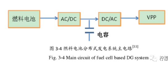 燃料電池是一種不經過燃燒直接以電化學反應方式將富氫燃料的化學能轉化為電能的發(fā)電裝置。從理論上講,燃料電池可將燃料能量的 90%轉化為可利用的電和熱。而且,燃料電池的效率與其規(guī)模無關,因而在保持高燃料效率時,燃料電池可在其半額定功率下運行。它與光伏發(fā)電都是直接給電網供電。其單體輸出電壓隨電流增大而下降,在一定電流范圍內電極極化壓降變化不大。另外,單體輸出電壓隨燃氣利用率增大而下降,這是因為燃料氣的總量輸入保持在不變的情況下,燃氣利用率與氫氣輸入量成反比,與電池電流密度成正比。這樣,燃氣利用率的增加會使實際參加反應的氫氣量減少(電池電流密度不變),從而導致電池的輸出電壓降低。在輸入氣體如氫氣和氧氣保持不變的情況下,燃料電池電壓和電流密度二者之間具有很好的線性關系,因此我們可以把燃料電池穩(wěn)態(tài)運行時看作是一個獨立電壓源和內部歐姆電阻的模型。因此燃料電池在并網時可以等值為一個電壓源與一個電阻。