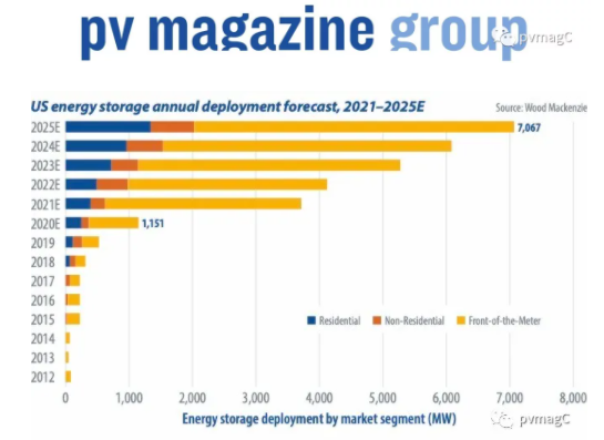 Wood Mackenzie報告稱,去年第二至三季度,美國儲能市場出現(xiàn)了240%的飆升,7月至9月期間的476兆瓦發(fā)電量創(chuàng)下了新的紀(jì)錄——這其中一半以上是由于Gateway項目。Wood-Mackenzie預(yù)計美國市場將從2020年底的逾1吉瓦增長到2025年的7.5吉瓦,漲幅為6倍。