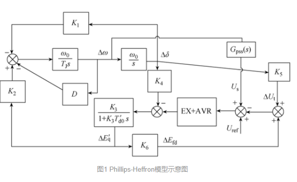 鑒于此,研究人員針對(duì)上述研究的不足,以儲(chǔ)能接入電廠后的調(diào)差系數(shù)配置、發(fā)電機(jī)無(wú)補(bǔ)償相位特性和阻尼變化為研究對(duì)象,考慮了儲(chǔ)能接入廠用電影響以及對(duì)勵(lì)磁系統(tǒng)調(diào)差的影響,并將其寫(xiě)入Phillips-Heffron模型,通過(guò)模擬儲(chǔ)能充放電過(guò)程,計(jì)算發(fā)電廠的無(wú)補(bǔ)償相位特性和阻尼變化趨勢(shì),通過(guò)不同工況下的計(jì)算對(duì)比,分析儲(chǔ)能接入對(duì)發(fā)電廠穩(wěn)定的影響,為儲(chǔ)能接入火電廠勵(lì)磁穩(wěn)定性分析提供參考。