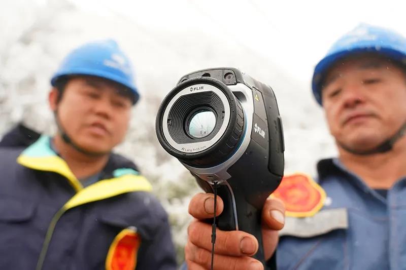 2020年12月17日,廣西桂林。針對線路覆冰情況,南方電網(wǎng)廣西桂林供電局工作人員對覆冰線路開展測溫、觀冰和清理線路走廊,確保線路安全穩(wěn)定運(yùn)行。莫曉姣 攝