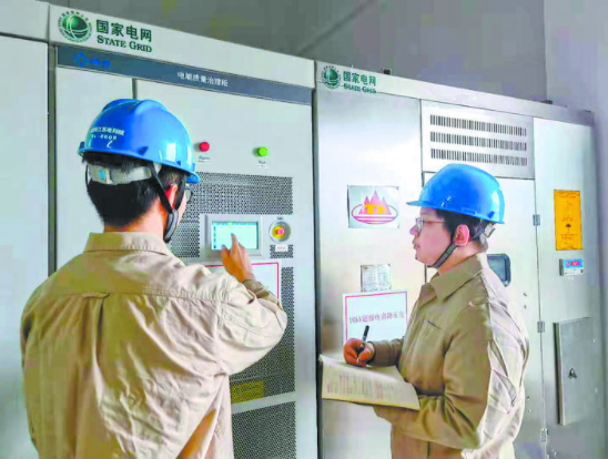 為確保項(xiàng)目可行性,攻關(guān)團(tuán)隊(duì)先在實(shí)驗(yàn)室完成50千瓦樣機(jī)各項(xiàng)功能試驗(yàn)后,再進(jìn)行500千瓦超級(jí)電容微儲(chǔ)能裝置的研制。該裝置主要由超級(jí)電容模塊、電力電子變流器和快速功率控制器三部分組成??焖俟β士刂破骺稍?0毫秒內(nèi)完成頻率檢測,電力電子變流器可在2毫秒內(nèi)實(shí)現(xiàn)有功功率的快速、精準(zhǔn)支撐,并且電力電子變流器集成了電網(wǎng)諧波主動(dòng)抑制、無功功率靈活調(diào)節(jié)功能,讓該裝置成為集儲(chǔ)能與電能質(zhì)量管理于一體的新型補(bǔ)償裝置。今年2月7日,這套變電站超級(jí)電容微儲(chǔ)能裝置投入使用。