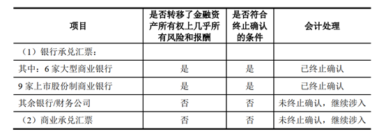 久美股份在公告中表示:“發(fā)行人對應收票據(jù)承兌人的信用等級進行了劃分,由信用等級較高銀行承兌的銀行承兌匯票在背書時終止確認,由信用等級一般銀行承兌的銀行承兌匯票以及商業(yè)承兌匯票在背書時繼續(xù)確認應收票據(jù),待到期兌付后終止確認?!?