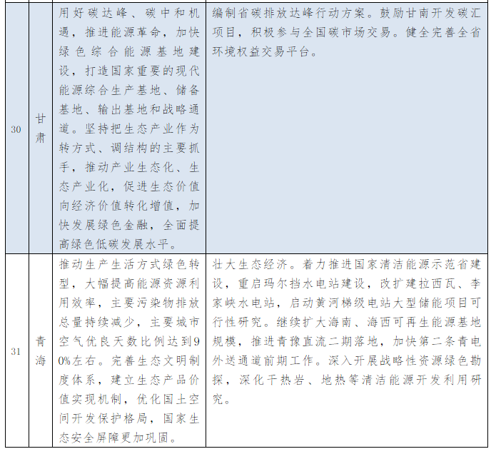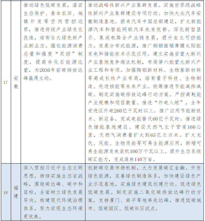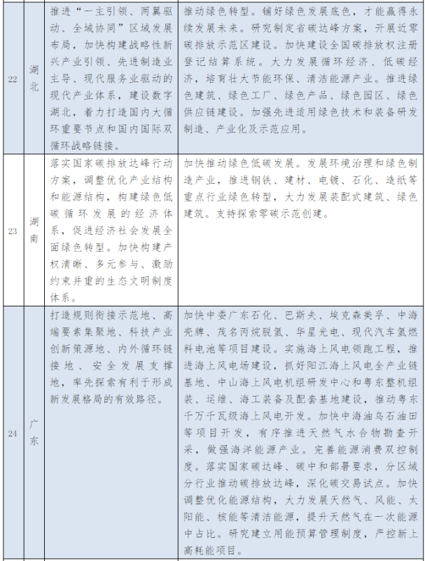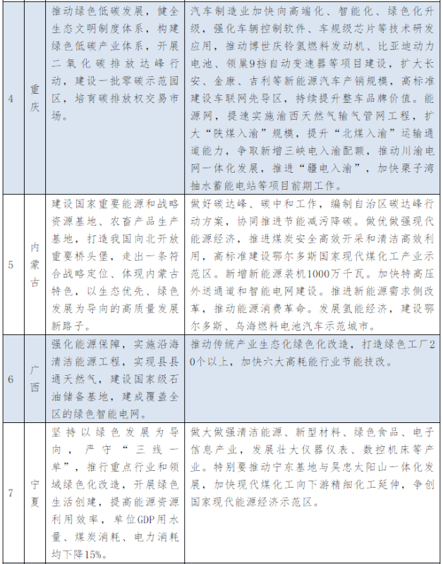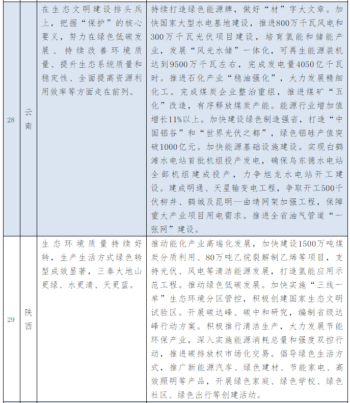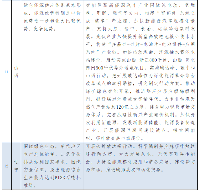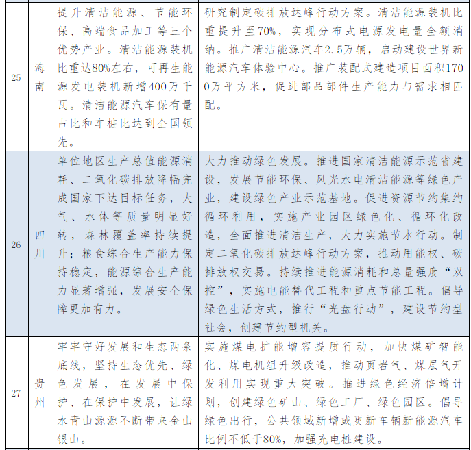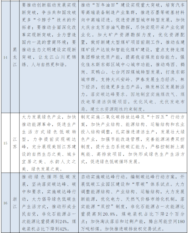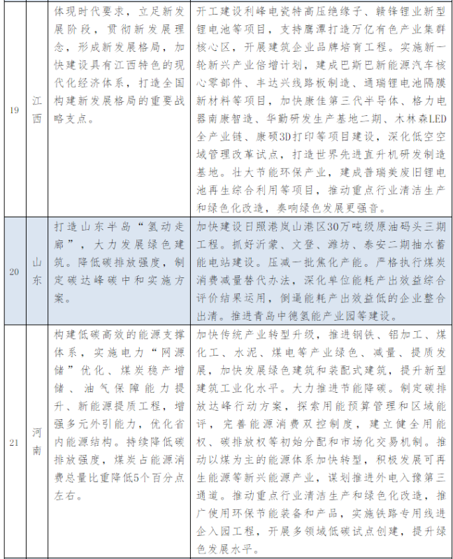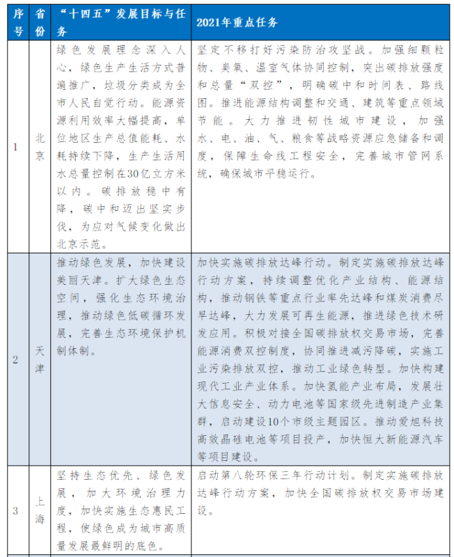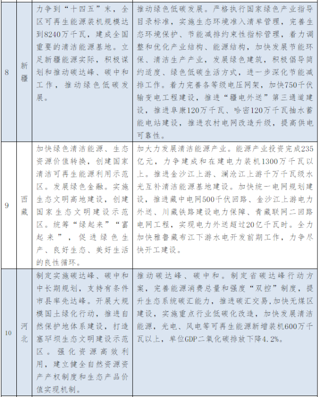 以下為31個(gè)省、自治區(qū)地方政府2021年政府工作報(bào)告中關(guān)于能源和碳中和部分的相關(guān)描述。