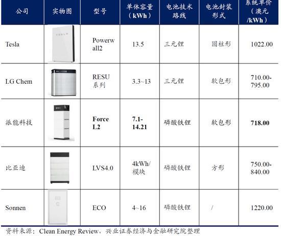 在全球幾家主要公司產(chǎn)品中,派能的系統(tǒng)每kWh單價相較其他幾家偏低。