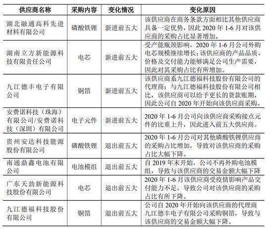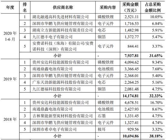 這也就意味著,派能采購的主要都是些基礎的器件和材料,沒什么技術壁壘,那他對上游的議價能力肯定是強的。我們截取2018-2020H1的前五大供應商來看也確實如此。