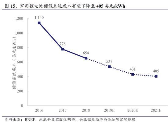 再看家用鋰電儲能的成本,已經(jīng)從2016年的每kWh超過1000美元降到如今的400-500美元。結合上表,意味著未來即使沒有補貼,“光伏+儲能”的經(jīng)濟性依然有很強的吸引力,并且隨著成本下降的刺激,吸引力會越來越顯著。