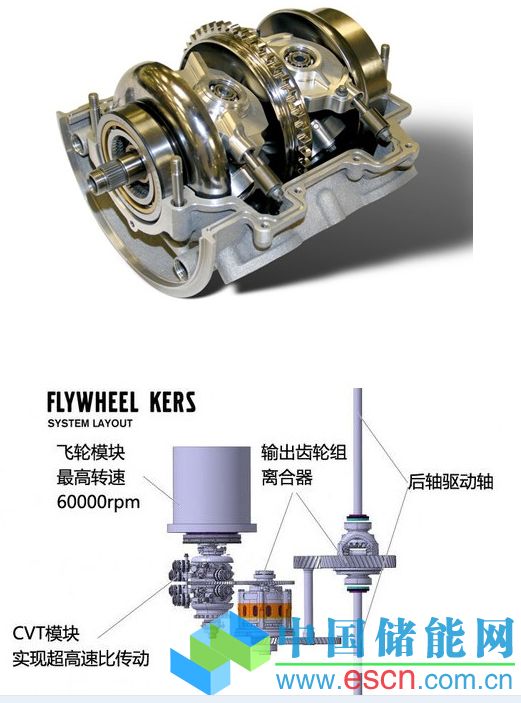 飛輪混合動力系統(tǒng)的應(yīng)用實例是F1的KERS系統(tǒng),在保留F1賽車原有動力總成的基礎(chǔ)上,加裝由IVT(InfinitelyVariableTransmission,無限變速器,和傳統(tǒng)CVT相比特點在于速比變化范圍極大)和真空飛輪構(gòu)成的機械動能回收系統(tǒng)。沃爾沃正在嘗試將F1上的KERS技術(shù)應(yīng)用在了量產(chǎn)車型上,技術(shù)合作方是為F1車隊提供技術(shù)支持的Torotrak與FlybridSystem公司。
