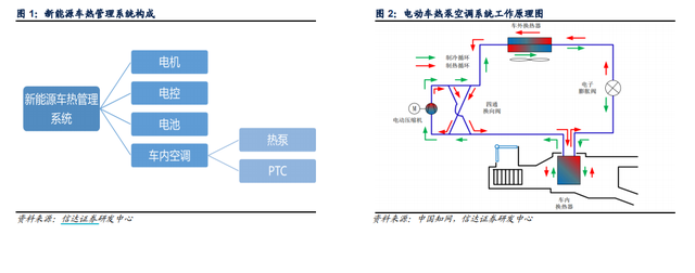 據(jù)了解,汽車熱管理主要分為電機、電控、電池的熱管理以及車內(nèi)空調(diào)系統(tǒng)。而熱泵空調(diào),正是車內(nèi)空調(diào)系統(tǒng)的一種。目前,燃油車制熱主要來自發(fā)動機工作時的散熱,而電動汽車本身無法利用余熱循環(huán),只能通過熱泵、PTC進行制熱。