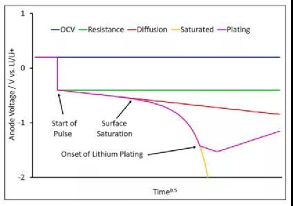 鋰離子電池的廣泛應(yīng)用使電池設(shè)計(jì)更加專業(yè)化:高能量密度型和高功率密度型。后者主要用于動(dòng)力汽車。對(duì)于動(dòng)力電池來說,一個(gè)工作周期涉及高倍率充放電脈沖,而高倍率和低溫條件下充電對(duì)兩電極都帶來不可逆損傷。如石墨電極上若電極電壓低于0 V(vs. Li/Li+),就會(huì)發(fā)生析鋰現(xiàn)象,進(jìn)而造成鋰沉積和剝離的庫(kù)侖效率低于鋰插入和脫出,且會(huì)不停消耗活性鋰和電解質(zhì)。此外,更大的風(fēng)險(xiǎn)是,鋰枝晶穿透隔膜,造成內(nèi)部短路。因此,測(cè)試兩種電極在高充放電倍率下的性能,了解受限制條件極為重要。
