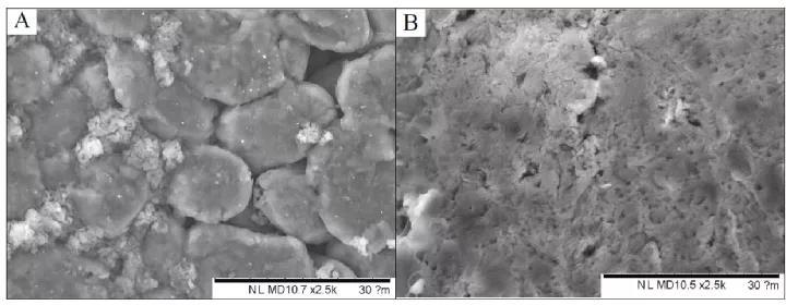 圖六:HB2負(fù)極在經(jīng)過5000脈沖后的SEM電鏡照片:A)石墨顆粒和B)氧化物測(cè)