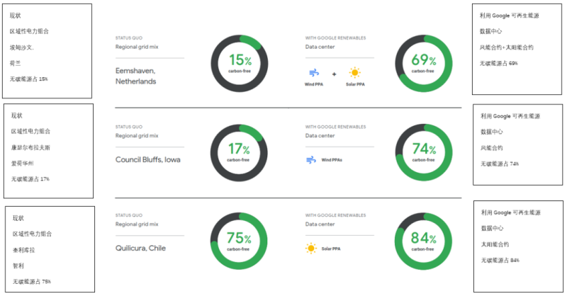 Google致力于盡自己的力量,加快向全天候24x7無碳能源過渡。自2007年起,就實現(xiàn)了碳中和。2017年,Google實現(xiàn)了將100%的全球能源消耗與可再生能源采購相匹配的目標。Google現(xiàn)在是世界上最大的非公用設施行業(yè)的可再生能源購買者??稍偕茉吹牟少弾椭鶪oogle在實現(xiàn)24x7全天候無碳能源方面取得了重大進展。每個擁有Google可再生能源合約的區(qū)域中,數(shù)據(jù)中心每小時至少有65%的無碳能源與之匹配??稍偕茉磳⒃谀茉聪到y(tǒng)脫碳中發(fā)揮重要作用。隨著用電量的不斷增加,Google將繼續(xù)在更多地區(qū)采購各種類型的可再生能源。