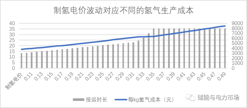 每天日間用光伏發(fā)電制氫滿負(fù)荷運(yùn)行,夜間16小時(shí)制氫根據(jù)市場(chǎng)變動(dòng)的電價(jià)進(jìn)行電力交易。比如在夜間風(fēng)電大發(fā)的時(shí)候可在預(yù)設(shè)電價(jià)以下時(shí)滿負(fù)荷生產(chǎn),預(yù)設(shè)電價(jià)以上時(shí)則降低生產(chǎn)負(fù)荷(氫氣產(chǎn)量需滿足最低市場(chǎng)需求)。