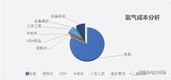大同市制氫加氫一體站為國(guó)內(nèi)首例于2019年投運(yùn),制氫采用500方/小時(shí)堿性電解水裝置。根據(jù)實(shí)際運(yùn)行數(shù)據(jù),分析電解水制氫的成本構(gòu)成如下。