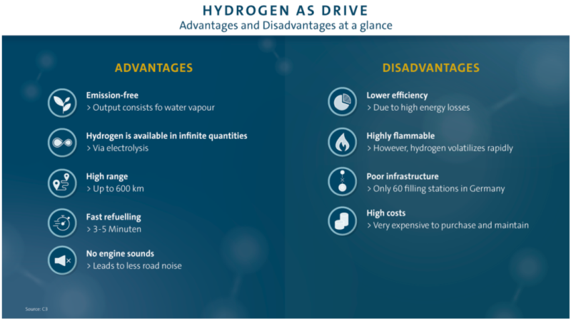 而氫動(dòng)力汽車的能量損失要大得多:在通過電解生產(chǎn)氫氣的過程中,已經(jīng)損失了45%的能量。在剩下的55%的原始能量中,當(dāng)氫在車內(nèi)轉(zhuǎn)化為電能時(shí),又有55%的能量損失了。這意味著氫動(dòng)力汽車的能源效率僅為25%至35%。