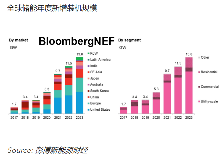 目前至2023年的儲能新增裝機(jī)規(guī)模的復(fù)合年增長率