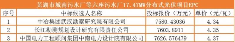 招標(biāo)范圍為蕪湖城南污水處理廠、濱江污水處理廠、大龍灣污水處理廠、城東污水處理廠、高安污水處理廠、天門山污水處理廠等六座污水處理廠分布式光伏項(xiàng)目17.47MWp的EPC總承包。具體工作內(nèi)容(包括但不限于):勘察設(shè)計(jì)、設(shè)備(含附屬設(shè)備)采購及安裝、建筑(包括通水、通電、通路、臨時(shí)設(shè)施、場地平整等)及安裝工程施工、項(xiàng)目管理、調(diào)試、驗(yàn)收、培訓(xùn)、移交生產(chǎn)、工程質(zhì)量保修期的服務(wù)等內(nèi)容。
