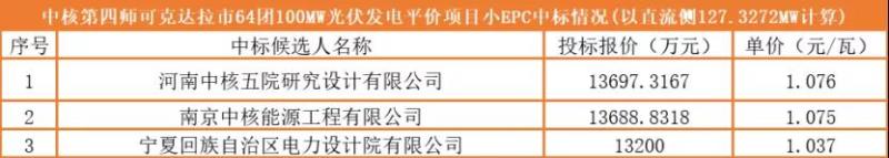 需要注意的是,下述中廣核兩個項(xiàng)目招標(biāo)公告中要求的并網(wǎng)日期分別為2020年12月30日前和2020年11月20日前完成全部并網(wǎng)發(fā)電,且項(xiàng)目最終并網(wǎng)節(jié)點(diǎn)不可更改;但是兩個項(xiàng)目的EPC中標(biāo)卻是在近日公示。光伏們查詢了相關(guān)的招標(biāo)公告及公示情況,暫未獲悉其中原因,故該價(jià)格僅供參考。