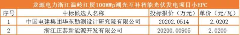 以龍?jiān)措娏φ憬瓬貛X100MW潮光互補(bǔ)項(xiàng)目為例,在日前的組件開標(biāo)中,正泰以1.73元/瓦的單價(jià)位列第一中標(biāo)候選人,第二中標(biāo)候選人的報(bào)價(jià)為1.76元/瓦。加上小EPC報(bào)價(jià)2.02元/瓦,整個EPC造價(jià)為3.75元/瓦,仍在組件漲價(jià)前的EPC報(bào)價(jià)范圍內(nèi)。
