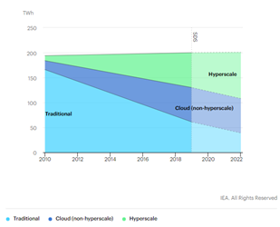 2010-2022年按數(shù)據(jù)中心類型劃分的全球數(shù)據(jù)中心能源需求