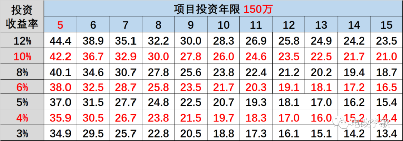 查以上投資回報率表可以得知:IRR=4%左右。