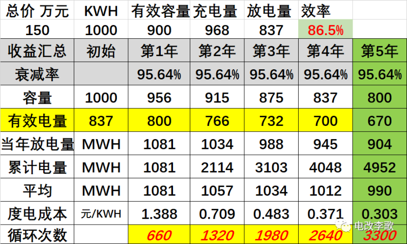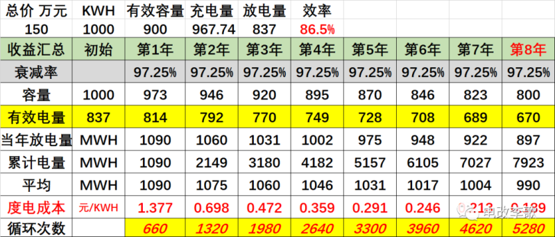 只要需求響應補貼,每年能再增加4萬收益,項目投資回報即可到達8%。按照項目周期8年內(nèi),年均有效容量750KWH,補貼4元,每年響應30天,每天2小時,則年收益為750*4*2*30=18萬元。