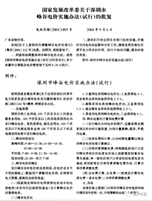 七、深圳市的峰谷分時電價仍按《國家發(fā)展改革委關于深圳市峰谷電價實施辦法(試行)的批復》(發(fā)改價格〔2004〕1895號)的規(guī)定執(zhí)行。
