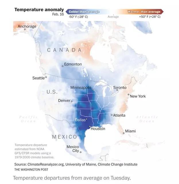 《鳳凰網》評論:“得州供電癱瘓的罪魁禍首是天然氣管道冰堵。作為亞熱帶地區(qū)的得州,缺乏預防控制天然氣冰堵的意識,在早已發(fā)出的大寒潮預警中,缺乏天然氣濕度控制去除設備,也缺乏預防管道冰堵的監(jiān)控措施,最終導致在寒潮中,天然氣管網被冰堵中斷?!?