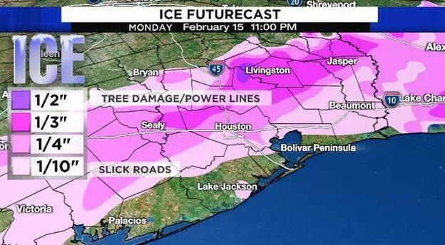 哈里斯縣法官Lina Hidalgo和休斯頓市長Sylvester Turner都強調可能會出現(xiàn)電線倒塌、樹枝斷裂和道路因冰而無法通行的情況。Lina Hidalgo在談到冬季風暴時也曾說得州的基礎設施不是為這樣的風暴而建的。政府建議周五和周六前往超市購買物品囤積以防停電,并且預警當氣溫低于冰點時,管道可能會爆裂。
