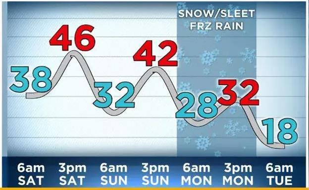 得州開始大降溫,氣象臺曾預測大部分夜晚的氣溫將降至零度以下,凍雨、夾雪、雪都有可能發(fā)生。