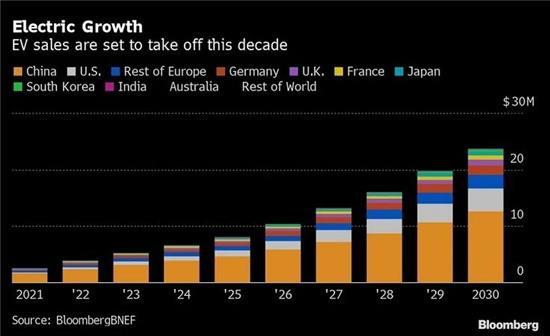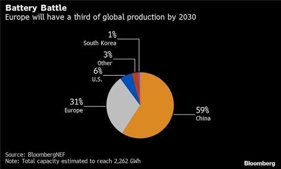 彭博新能源財經(BloombergNEF)估計,到2030年,歐洲大陸在全球電池生產中的份額將從去年的7%上升到31%。
