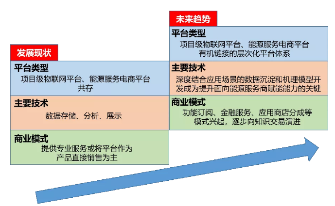 (一)平臺(tái)類(lèi)型上,當(dāng)前項(xiàng)目級(jí)物聯(lián)網(wǎng)平臺(tái)、能源服務(wù)電商平臺(tái)共存,未來(lái)二者有機(jī)鏈接的層次化平臺(tái)體系成為重要發(fā)展方向