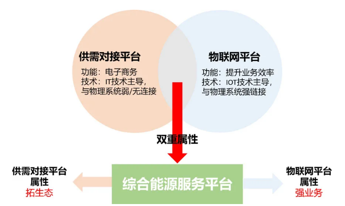 定位一:平臺(tái)屬性上,成為交易、運(yùn)營(yíng)等海量信息的匯聚樞紐和流量入口,兼具供需對(duì)接與物聯(lián)網(wǎng)平臺(tái)雙重屬性。綜合能源服務(wù)平臺(tái)不同于京東、淘寶等電商平臺(tái),其本質(zhì)上還有支撐形成物理系統(tǒng)解決方案的需求,所以具有供需對(duì)接平臺(tái)和工業(yè)互聯(lián)網(wǎng)平臺(tái)雙重屬性,并在雙重屬性的驅(qū)動(dòng)下掌握用戶(hù)交易信息、物理系統(tǒng)運(yùn)行信息等信息入口,實(shí)現(xiàn)綜合能源服務(wù)業(yè)務(wù)的線上引流匯聚,打造線上線下融合新型生態(tài)。