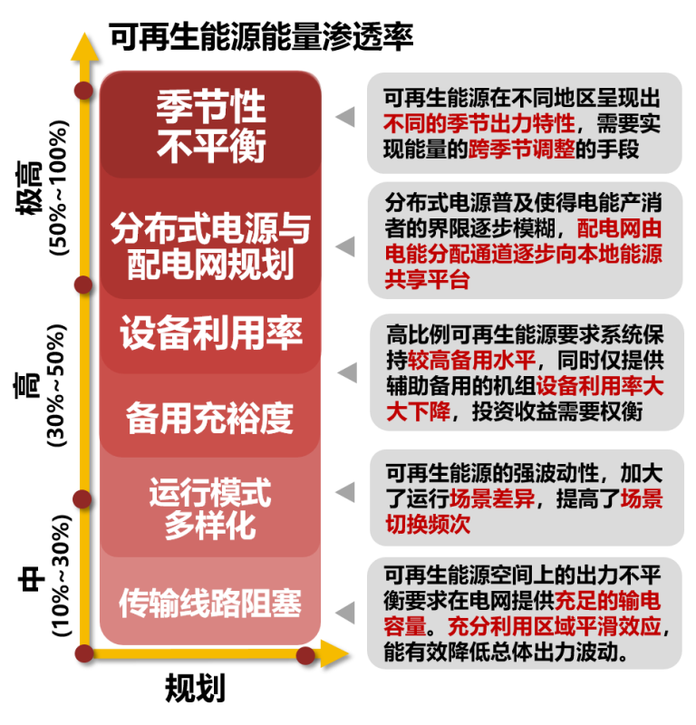 圖4 高比例可再生能源滲透對系統(tǒng)規(guī)劃與發(fā)展的挑戰(zhàn)
