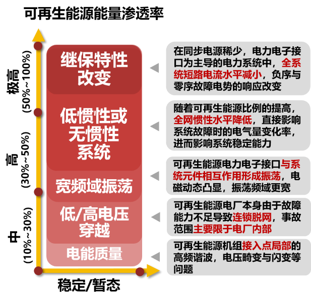 圖2 高比例可再生能源滲透對系統(tǒng)穩(wěn)定與保護(hù)的挑戰(zhàn)