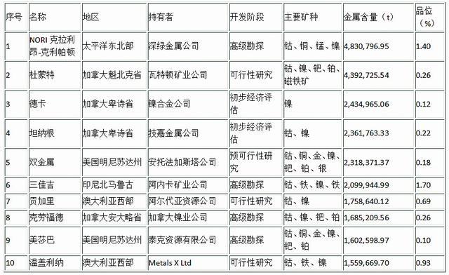 全球十大鎳礦項(xiàng)目