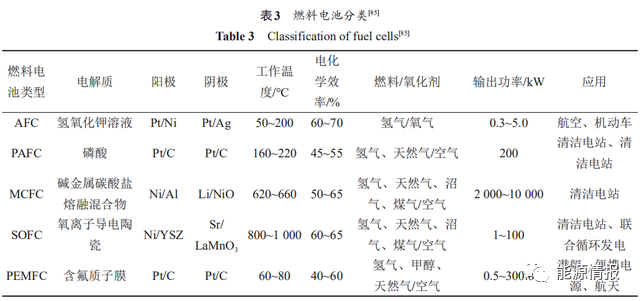 燃料電池是一種可以將燃?xì)馀c氧氣的化學(xué)能轉(zhuǎn)化為電能的發(fā)電裝置,因其不受卡諾循環(huán)效率的限制,故具有很高的能量轉(zhuǎn)化效率?;鞖涮烊粴夤艿肋\(yùn)輸中的氫氣、甲烷、混合氣體均可作為不同種類燃料電池的燃料氣。常見燃料電池類型見表3。本文重點(diǎn)介紹固體氧化物燃料電池(SOFC)和質(zhì)子交換膜燃料電池(PEMFC)。