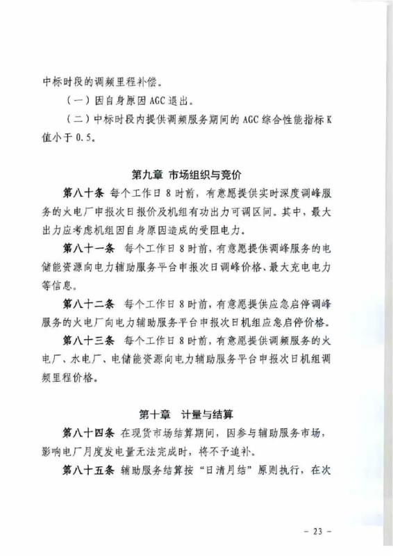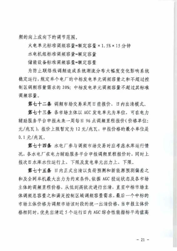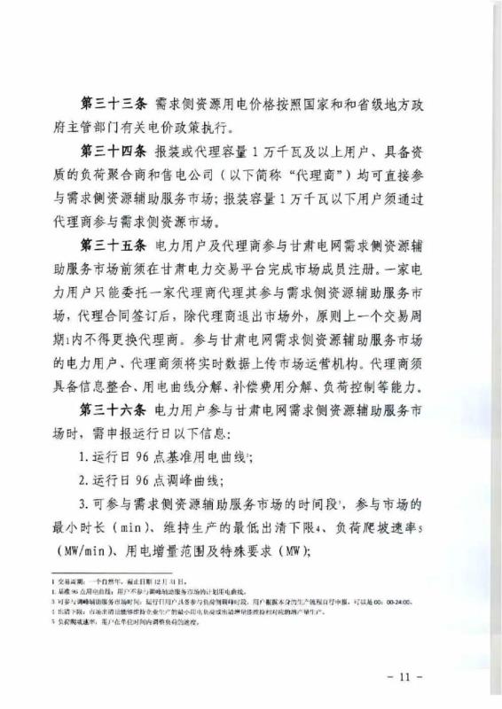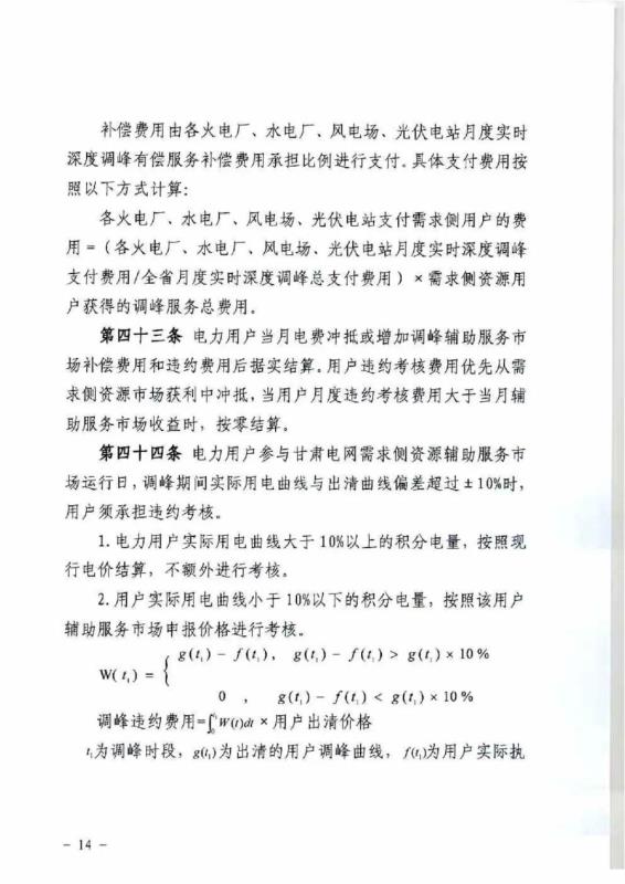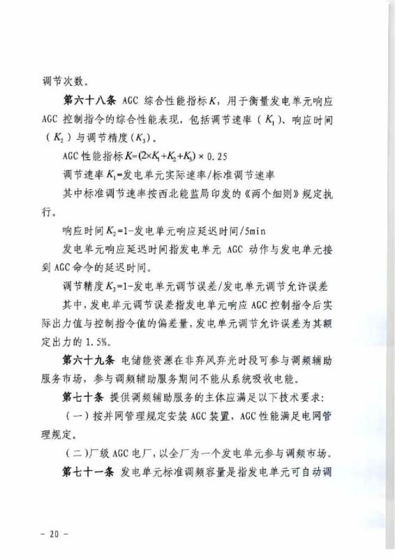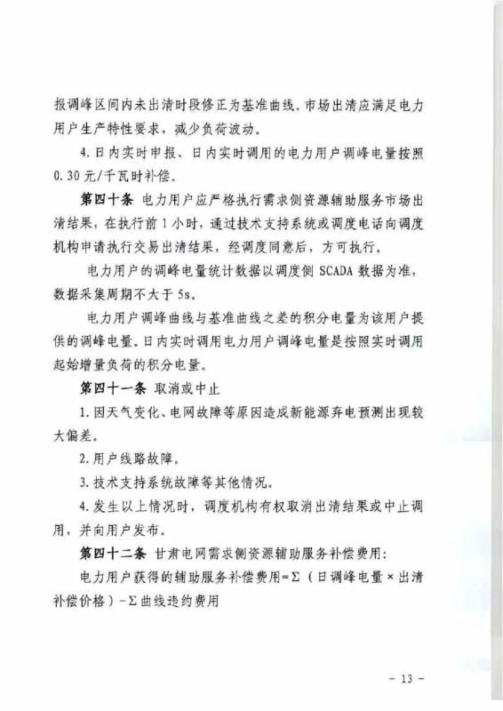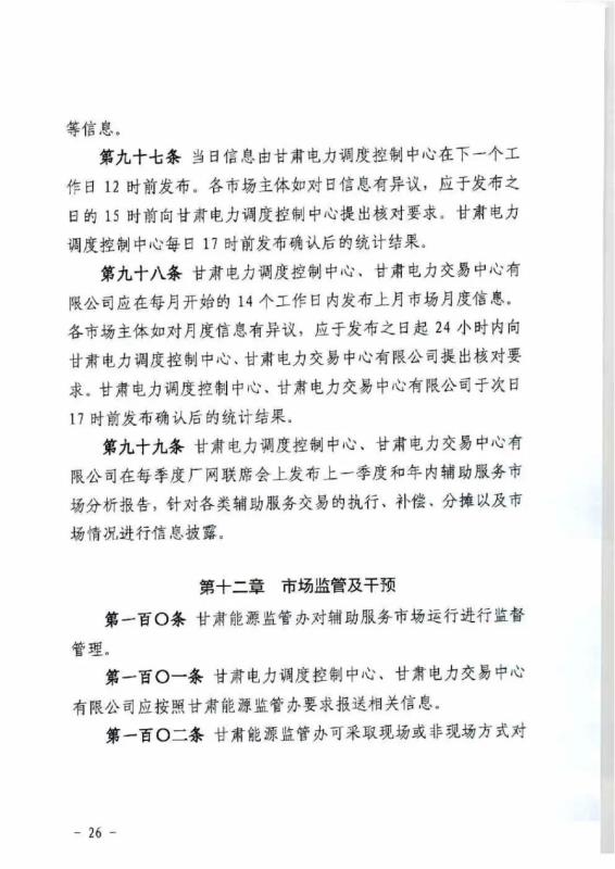 中國儲能網訊:4月10日,國家能源局甘肅監(jiān)管辦公室發(fā)布關于征求《甘肅省電力輔助服務市場運營規(guī)則(征求意見稿)》意見的函,意見稿規(guī)則較2019年發(fā)布的暫行補償價格有較大改變。調頻輔助服務補償價格由上限15元/MW下調至12元/MW。調峰輔助服務申報價格非現貨期間為0.5元/kWh,現貨期間為0.3元/kWh。