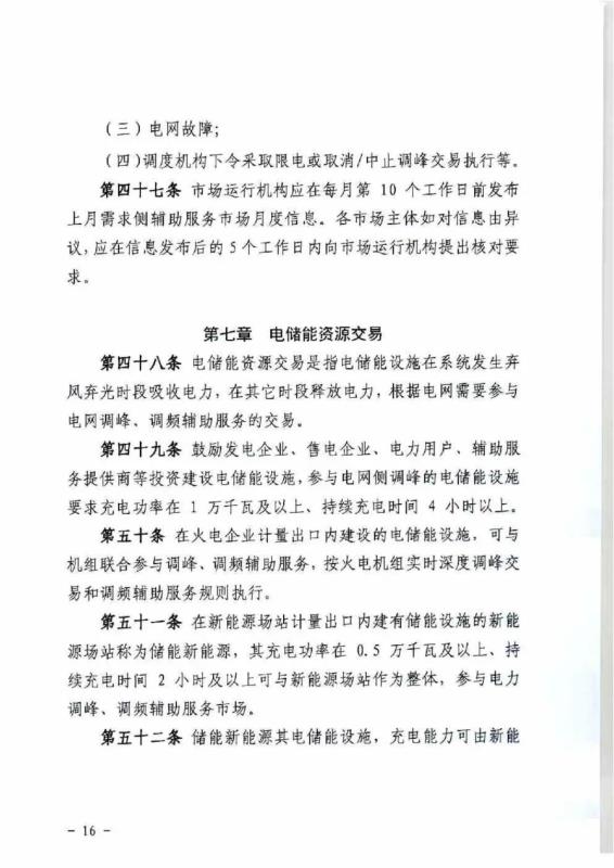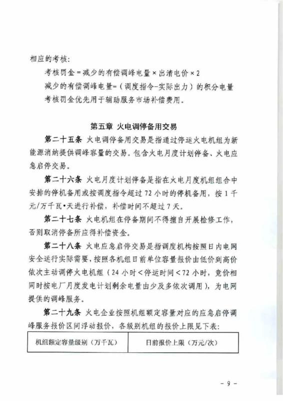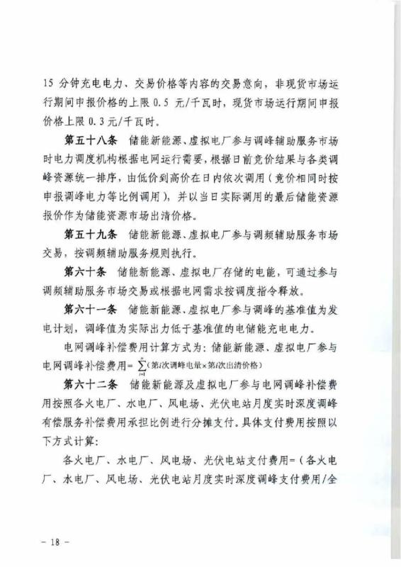 新能源場站儲能或虛擬電廠在調峰輔助服務平臺開展集中交易,申報價格由2019年版的上限0.2元/kWh,提升為非現貨市場運行期間上限0.5元/kWh,現貨市場運行期間上限0.3元/kWh。