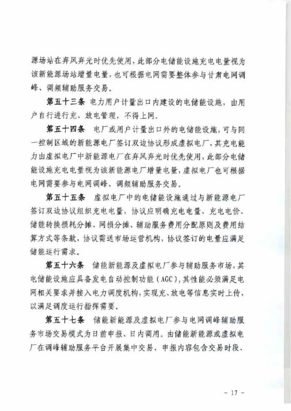 在新能源場站計量出口內建設的5MW/10MWh及以上電儲能設施,可與新能源場站作為整體,參與調峰、調頻輔助服務市場。其充電電量可優(yōu)先使用新能源棄風棄光電量,且視為新能源場站增發(fā)電量。