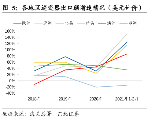 中國(guó)光伏行業(yè)協(xié)會(huì)預(yù)計(jì),2021年我國(guó)光伏新增裝機(jī)規(guī)模將達(dá)到55GW-65GW。新增裝機(jī)和能源轉(zhuǎn)型雙輪驅(qū)動(dòng)下,下游企業(yè)對(duì)逆變器的需求水漲船高。