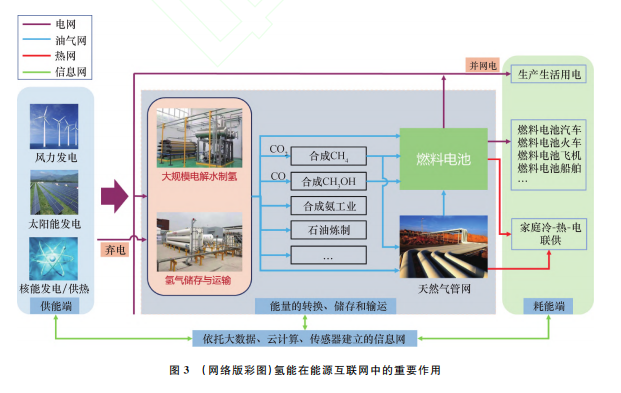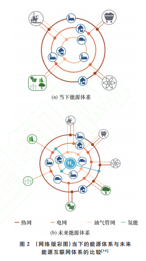 2)以氫能 為樞紐,將一次能源與電網(wǎng)、氣網(wǎng)、熱網(wǎng)、交通網(wǎng) 連為一體;