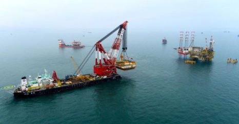 中國海油秦皇島32-6電力動力平臺組塊安裝。圖片由中國海油提供