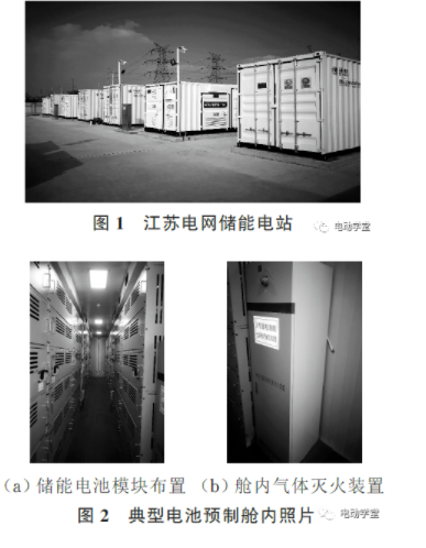 中國儲能網(wǎng)訊:預(yù)制艙式儲能系統(tǒng)通常采用集裝箱作為外圍護結(jié)構(gòu),將儲能電池、支架、空調(diào)通風(fēng)等輔助設(shè)置在工廠中預(yù)制成一體,具有便于安裝、占地面積小、移動靈活、建設(shè)周期短等優(yōu)點,在國內(nèi)外應(yīng)用十分廣泛,江蘇電網(wǎng)預(yù)制艙式磷酸鐵鋰儲能電站如圖1和圖2所示。