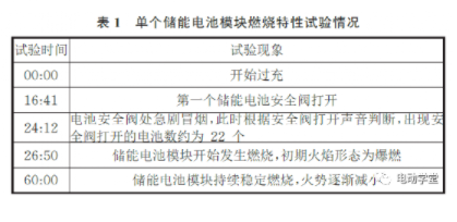 根據(jù)相關(guān)試驗現(xiàn)象分析可知,從儲能電池模塊開始充電到整個模塊發(fā)生燃燒,過程大致可以分為以下三個階段: