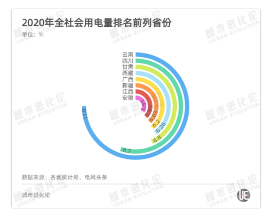 有觀點(diǎn)分析,去年受疫情影響,內(nèi)陸城市相比外向型經(jīng)濟(jì)占比較高的東部沿海城市而言,受到的影響相對(duì)較小,經(jīng)濟(jì)運(yùn)行所需用電量的增長(zhǎng)幅度也就比沿海地區(qū)更大。