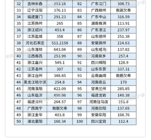 其中,廣州、深圳、天津、東莞、唐山、鄂爾多斯緊隨其后,分列全國(guó)第5至10位。其中,東部沿海經(jīng)濟(jì)強(qiáng)市和北方傳統(tǒng)工業(yè)城市各占一半。