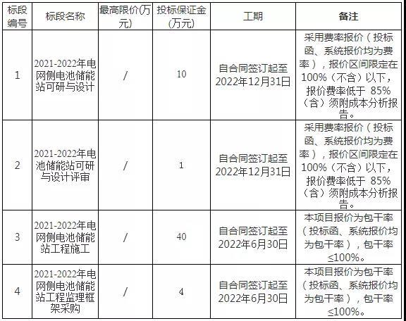 上述4個標包均為框架招標,不保證最終采購數(shù)量。4個標包的標的儲能站有可能交叉,但不完全相同。