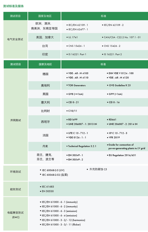 DEKRA德凱深知影響光伏逆變器可靠性的因素有眾多,例如:逆變器選用的電子電氣元器件的可靠性、電路架構(gòu)設計、系統(tǒng)性故障等等。針對不同的因素,DEKRA德凱都設計了與之配套的測試方案,并且已經(jīng)幫助眾多的逆變器制造商獲得傳統(tǒng)的并網(wǎng)和安規(guī)認證。